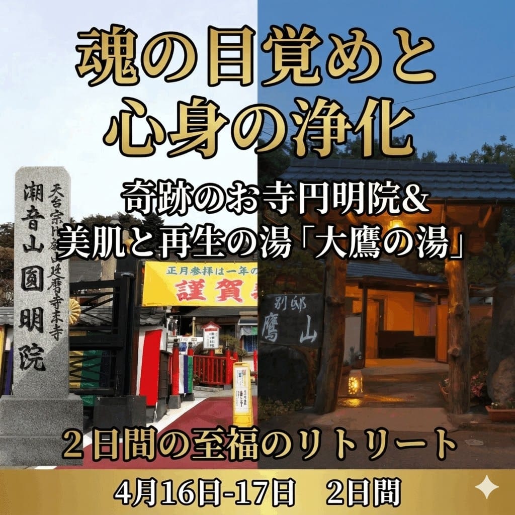 【4月16日―17日開催】 魂の目覚めと心身の浄化。奇跡の寺「円明院」&美肌と再生の湯「大鷹の湯」リトリート